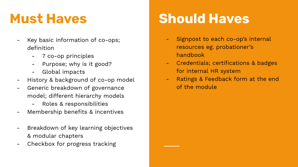 The client’s main need is to create a new online learning module for co-ops to use in training new workers, educating them mainly on core values and principles of worker cooperatives. This will be to incentivise the workers.coop membership, with access to extra resources, network and training materials.