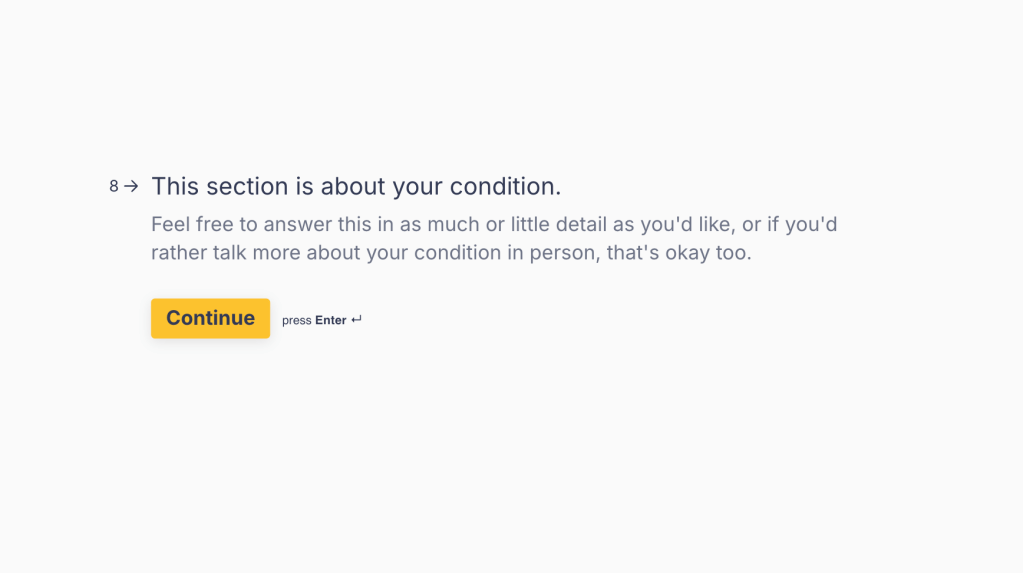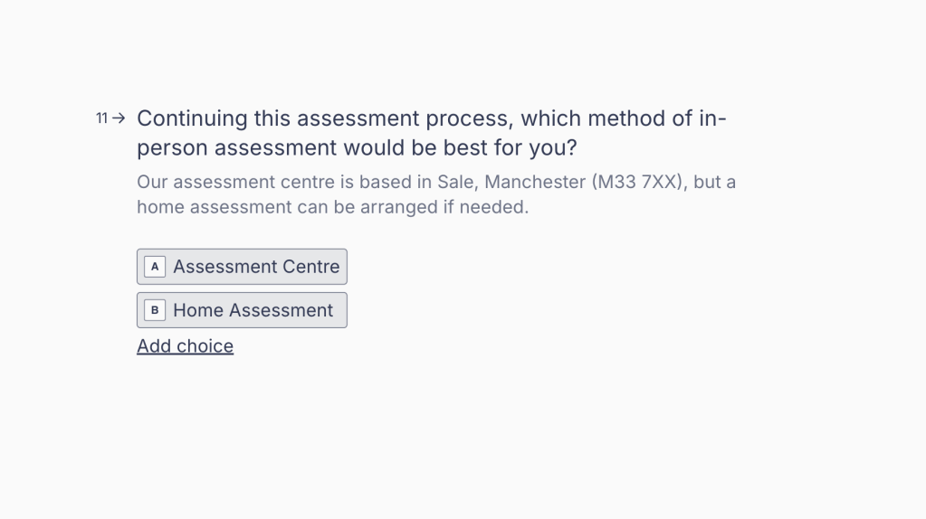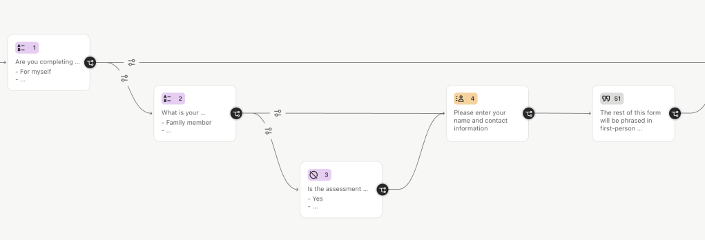The questions, sections and logic were then translated into Typeform. After the MVP was developed, I proceeded to the testing stage to gain feedback.